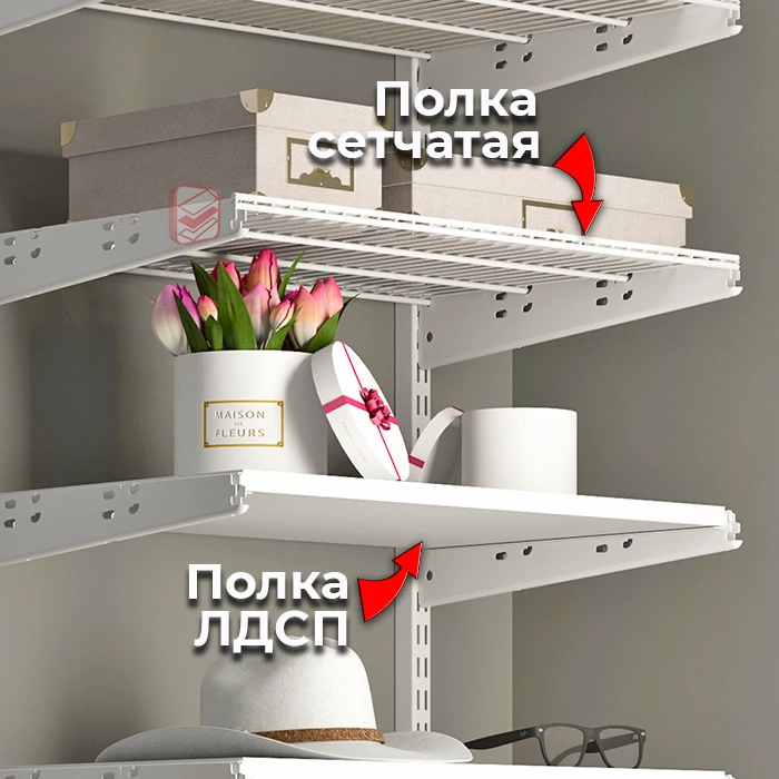- В комплект входят все необходимые компоненты для установки: полки, штанга, стойки и кронштейны.