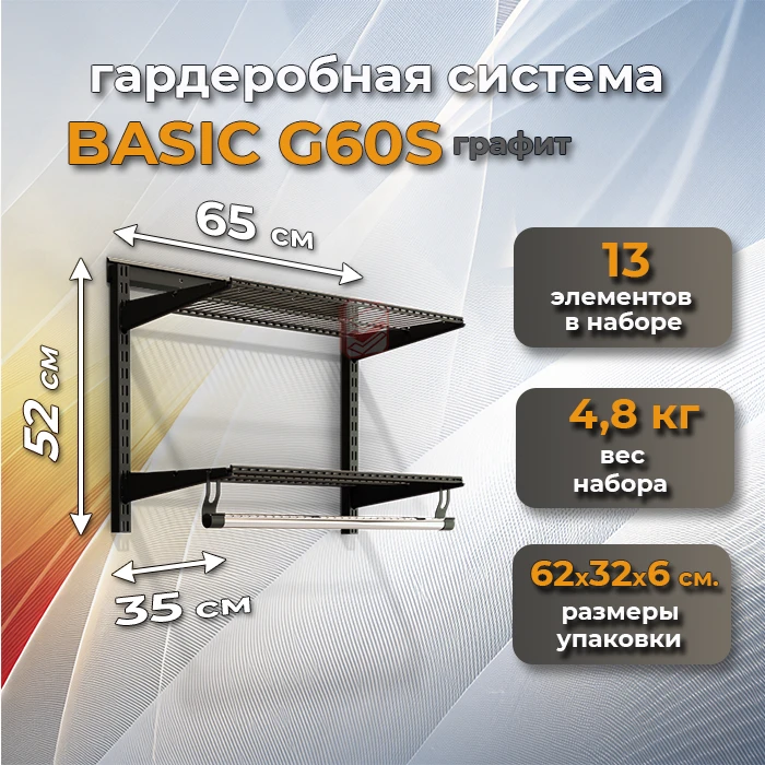 Гардеробная система Basic G60S графит — это не только практичное, но и стильное решение для вашего дома. Она легко адаптируется под любые нужды хранения и поможет поддерживать порядок в вашем гардеробе.