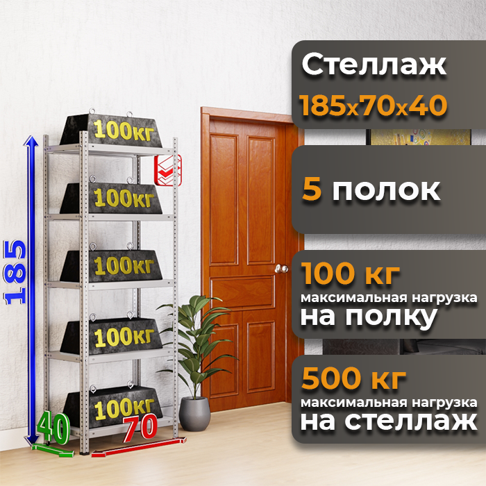 Стеллаж металлический 185х70х40 с 5 полками MS Standart: надежность и универсальность для вашего дома